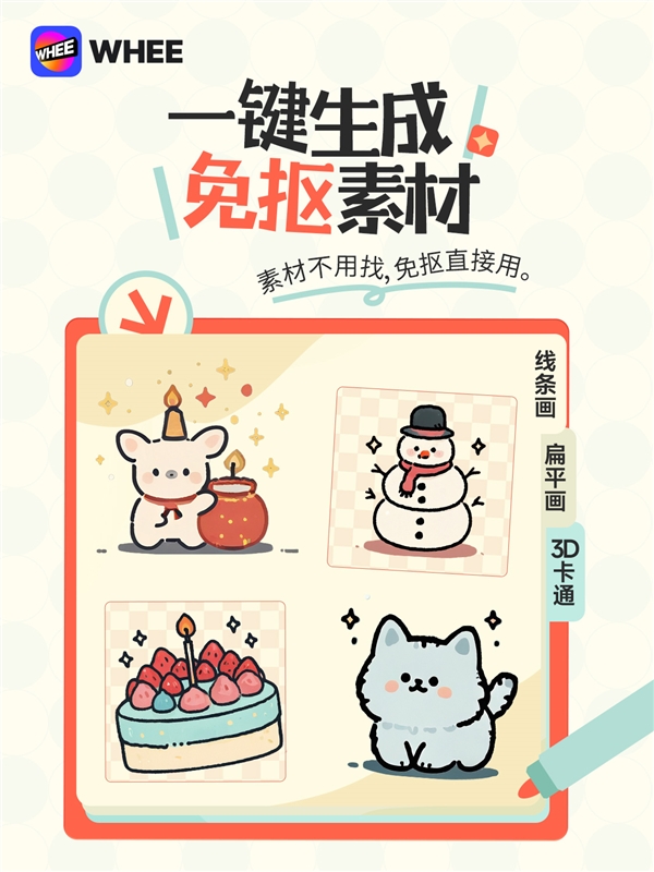 极容易呈现乱码、变形等问题,该功能还支撑图生海报,WHEE推出的“AI中文海报”功能能够精确生成美妙的中文字体,