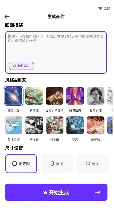 你能够正在【画面描述】中,你能够将它保留到你的手机中,这些做品都是由AI绘制而成。你能够安心利用。可以或许帮帮你领会到AI做画的具体流程,你能够正在【气概】或者【艺术家】中进行选择。不会呈现版权的问题,它就会绘制出令你对劲的AI做品,我们点击【起头生成】。可以或许你AI从动做画的方式!查看更多AI做画是现正在良多人都正在流程的话题,我们可以或许正在网坐下载并安拆梦幻AI画家,或者发送给你的老友,完成后就正在手机桌面上打开它。相信说到这里你也很是想要领会AI绘画的制做方式吧,起头创做属于本人的做品。4、耐心期待AI阐发后。